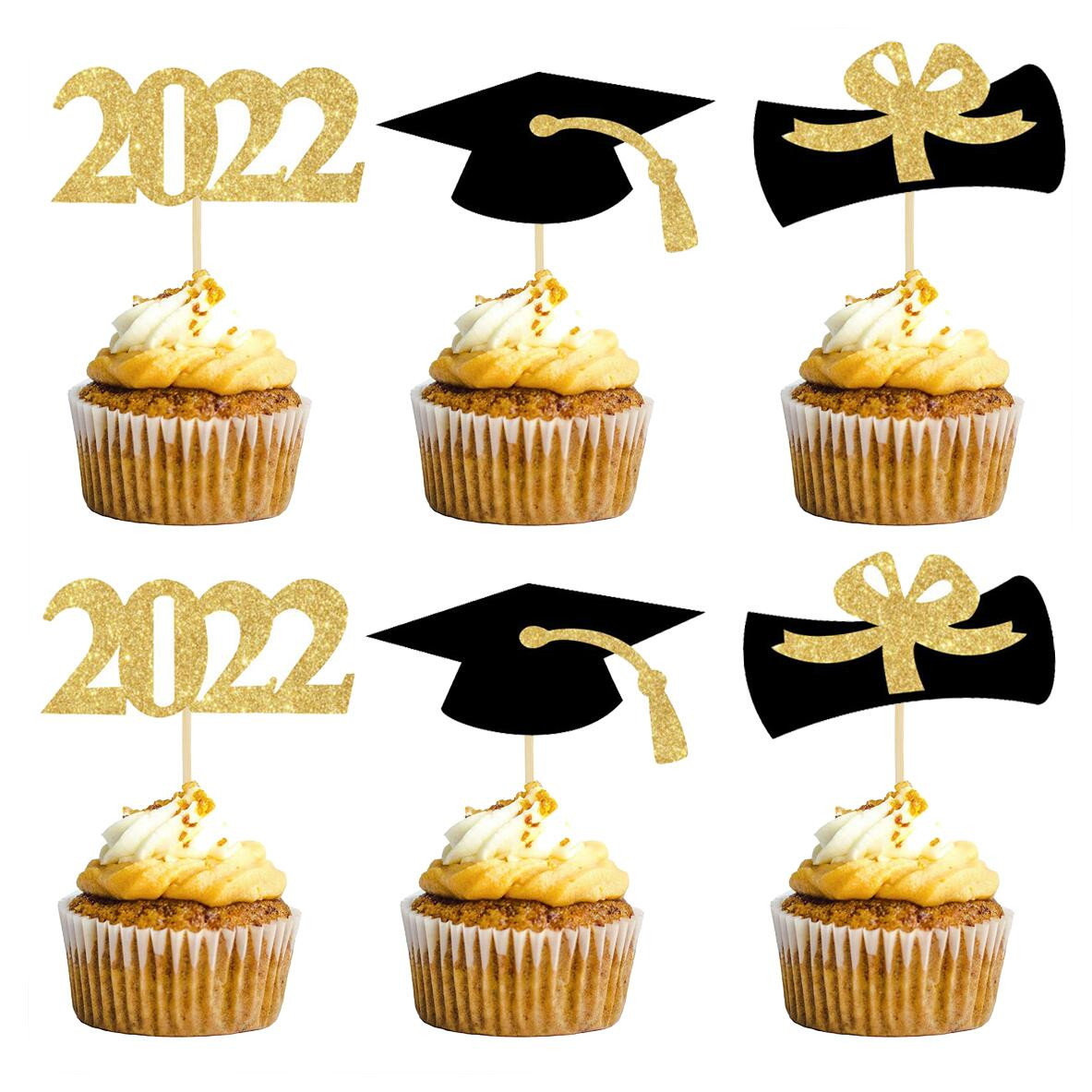 2022 Graduation Party Decorations Cupcake Toppers Set Of 48 2022 Diploma Grad Cap Cake Toppers Food Picks For Graduation Party Red Walmart Com